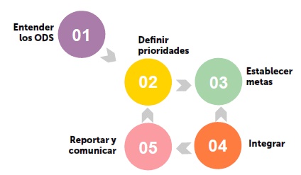 Esta secuencia de cinco pasos busca que las empresas alineen sus estrategias a los ODS, y que puedan medir y gestionar las acciones que realizan en este marco. Están orientados principalmente a aquellas empresas que ya son sensibles a temas de sostenibilidad y que han incorporado alguna acción al respecto.